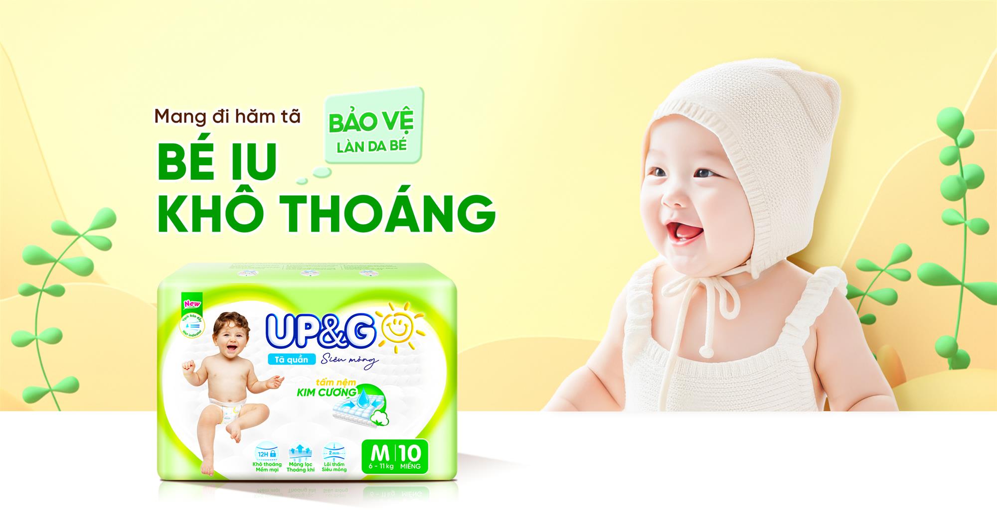“ Bảo vệ làn da non nớt của bé với công nghệ thấm hút siêu tốc, giữ bề mặt luôn khô thoáng. ngăn chặn tối đa nguy cơ hăm tã.”