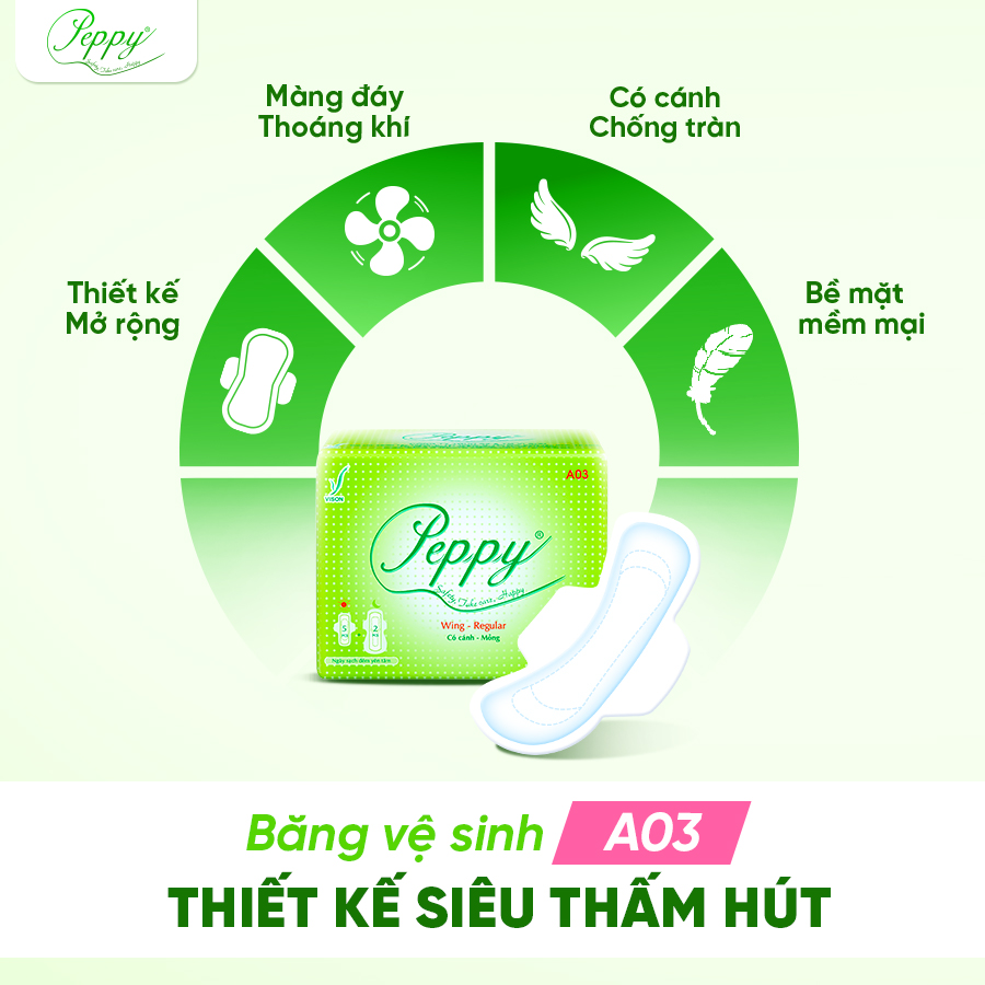 Viền bảo vệ khép kín giúp ngăn ngừa chất lỏng tràn ra ngoài, đặc biệt là ở quanh viền miếng băng, tạo thành một hàng rào bảo vệ ngăn chặn dịch kinh nguyệt rò rỉ.