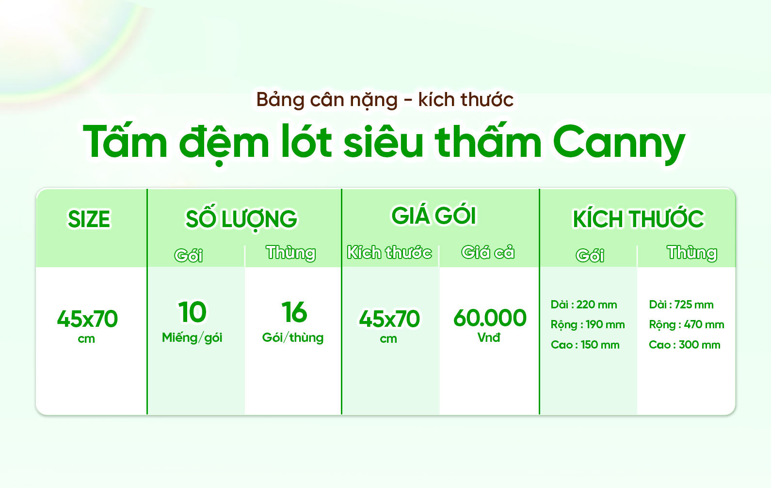 Tấm đệm lót người lớn Canny được thiết kế siêu mỏng nhẹ kết hợp với kích thước rộng rãi, mang lại cảm giác thoải mái và an toàn cho người sử dụng.