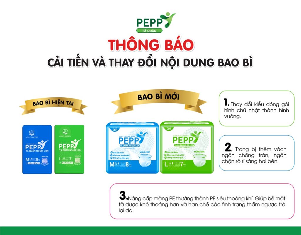 Thông báo cải tiến và thay đổi mẫu bao bì tã quần Peppy